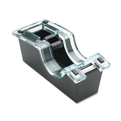 This contemporary desktop tape dispenser features a stylish, clear acrylic top—great for any décor. The weighted base allows for quick and easy one-handed dispensing. Tape not included. Tape Dispenser Type: Desktop; For Tape Width: Up to 3/4"; For Tape Length: Up to 1,500".