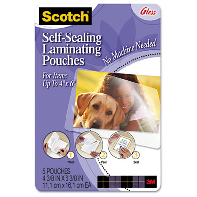 MMMPL900G Self-Sealing Laminating Pouches, 9.5 mil, 4 3/8 x 6 3/8, Photo Size, 5/Pack By 3M/COMMERCIAL TAPE DIV.