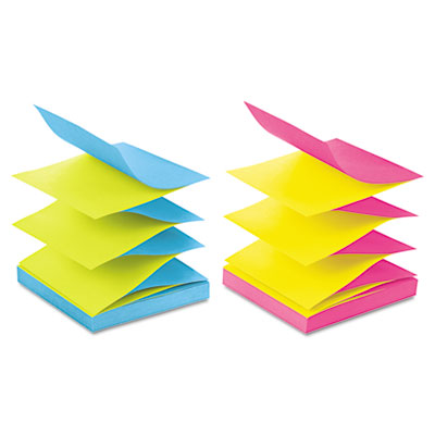 A fresh note is always close at hand. These note pads utilize a unique accordion-style design that pop up one-by-one. Dispenser sold separately. Pad Type: Pop-Up; Sheet Size (W x H): 3 in x 3 in; Number of Sheets per Pad: 100; Assortment: N/A.