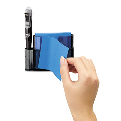 Dispenser mounts vertically on wall or door with Command™ adhesive and holds accordion-style pop-up notes with added space for your pens. Includes ten 90 sheet pads of 3 x 3 notes and FREE dispenser. Note Dispenser Type: Vertically-Mounted Self-Stick Note Holder; Accepts Pad Size (W x H): 3" x 3"; Color(s): Smoke.