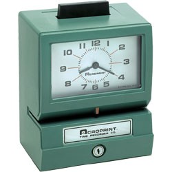 Acroprint Model 125 Time Clock. The Acroprint Model 125 is a heavy-duty time clock that can handle thousands of print registrations per day. These dependable workhorses are suitable for any size business in any environment. Suitable for time and attendance tracking, job costing, time and date recording and many other applications. ***ITEM IS REFURBISHED-2YR WARRANTY