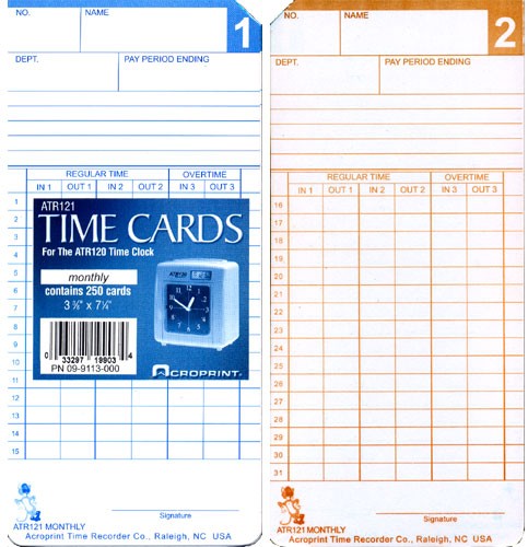 Monthly/Semi-Monthly Time Cards for ATR120 (250) By Acroprint