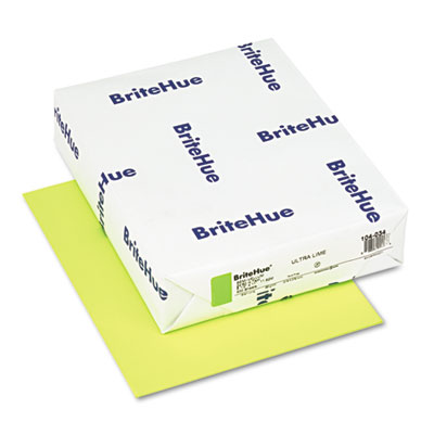Amplify your message with colorful, vibrant BriteHue®. Made with Green-e certified renewable wind energy. The electricity used to manufacture BriteHue® is offset with renewable wind power. Acid-free. Size: 8 1/2 x 11; Paper Color(s): Ultra Lime; Paper Weight: 24 lb..