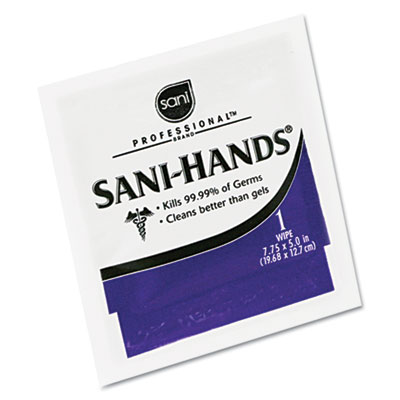 NICD43800 Sani-Hands II Sanitizing Wipes, 7 1/2 x 5 1/2, 100 Packets/Box By NICE-PAK PRODUCTS, INC