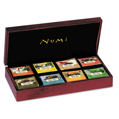 NUM10157 Velvet-Lined Tea Chest, 14 1/2 x 2 1/2 x 6 1/2, Mahogany By Numi