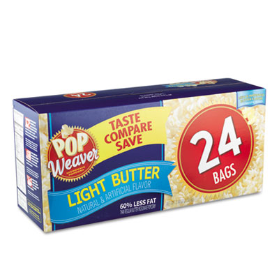 Choose the brand that's tall in taste and short in cost. Pop Weaver has the delicious rich buttery flavor and plump, tender texture that keeps people coming back for more. It's the perfect healthy, satisfying snack. Conveniently microwaveable. Food Type: Popcorn; Flavor: Light Butter; Capacity (Weight): 3 11/25 lbs.
