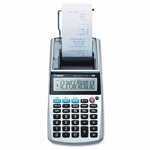 Canon introduces another palm printing calculator - the P1-DHV - featuring a stylish, silver metallic design and advanced calculations right in the palm of your hand. Time Calculation enables you to calculate time-based fee structures, while profit margin calculation can be calculated with the touch of a few keys. Tax rates can be stored and recalled whenever needed. And finally, the P1-DHV has a built-in battery indicator to let you know when it's time to change the batteries. Once again, the P1-DHV proves that success cannot be measured by size alone.
