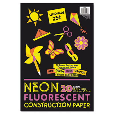 PAC104303 Neon Construction Paper, 76 lbs., 12 x 18, Assorted, 20 Sheets/Pack By PACON CORPORATION