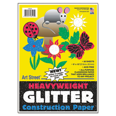PAC148105 Art Street Glitter Construction Paper, 76 lbs., 9 x 12, Assorted, 50 Sheets/Pack By PACON CORPORATION