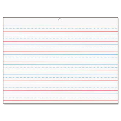 Raised headlines and baselines engage both sight and touch while helping students stay within the guidelines. Blue headlines, blue dotted midlines and red baselines. Conforms to D'Nealian™ and Zaner-Bloser™ handwriting styles. Size: 10 1/2 x 8; Paper Color(s): White; Paper Weight: 16 lb..