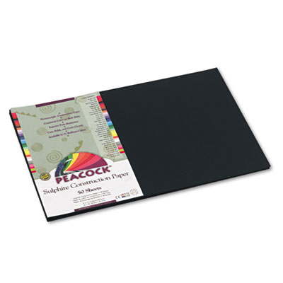 PACP6312 Peacock Sulphite Construction Paper, 76 lbs., 12 x 18, Black, 50 Sheets/Pack By PACON CORPORATION