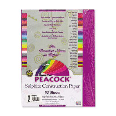 PACP6409 Peacock Sulphite Construction Paper, 76 lbs., 9 x 12, Magenta, 50 Sheets/Pack By PACON CORPORATION