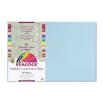 PACP7612 Peacock Sulphite Construction Paper, 76 lbs., 12 x 18, Sky Blue, 50 Sheets/Pack By PACON CORPORATION