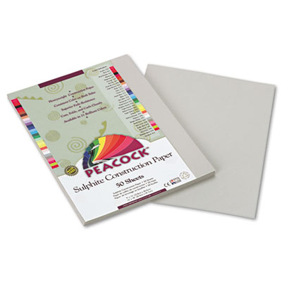 PACP8809 Peacock Sulphite Construction Paper, 76 lbs., 9 x 12, Pearl Gray, 50 Sheets/Pack By PACON CORPORATION