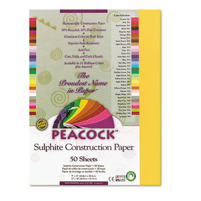 PACP9309 Peacock Sulphite Construction Paper, 76 lbs., 9 x 12, Gold, 50 Sheets/Pack By PACON CORPORATION
