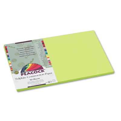 PACP9612 Peacock Sulphite Construction Paper, 76 lbs., 12 x 18, Hot Lime, 50 Sheets/Pack By PACON CORPORATION