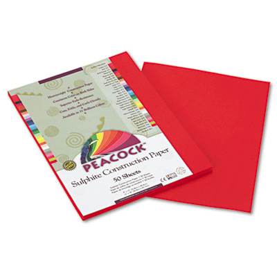 PACP9909 Peacock Sulphite Construction Paper, 76 lbs, 9 x 12, Holiday Red, 50 Sheets/Pack By PACON CORPORATION