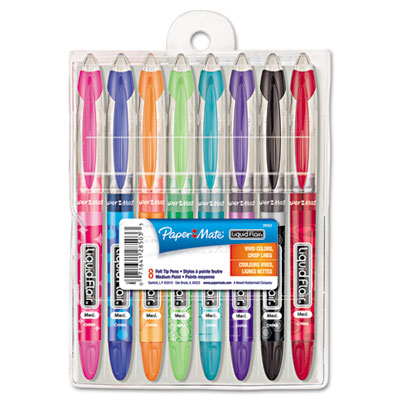 PAP28503 Liquid Flair Porous Point Stick Pen, Assorted Ink, Medium, 8 per Set By SANFORD