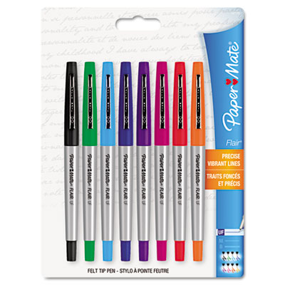 PAP62145 Flair Porous Point Stick Liquid Pen, Assorted Ink, Ultra Fine, 8/St By SANFORD