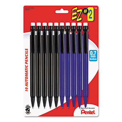 PENAX17BP10K6 EZ#2 Mechanical Pencil, HB, 0.70 mm, 5 Black and 5 Blue Barrels, 10/Pack By PENTEL OF AMERICA