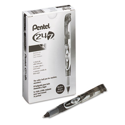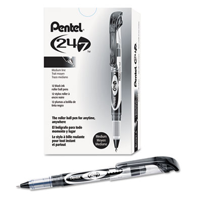 PENBLD97A 24/7 Roller Ball Capped Free-Flowing Liquid Pen, Black Ink, Medium, Dozen By PENTEL OF AMERICA