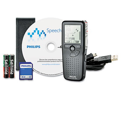 Capture hours of thoughts, ideas and speeches with this digital recorder that features a removable media card memory. Files are recorded in crystal-clear DSS format to give you excellent audio quality. Hands-free voice activated recording ensures you won't miss a word. Easy-to-use push buttons enable single-handed operation. Quickly transfer completed files to your PC via a USB cable for storage or professional transcription. View file information at a glance on the large backlit LCD screen. Recording Functions: One Touch Record.