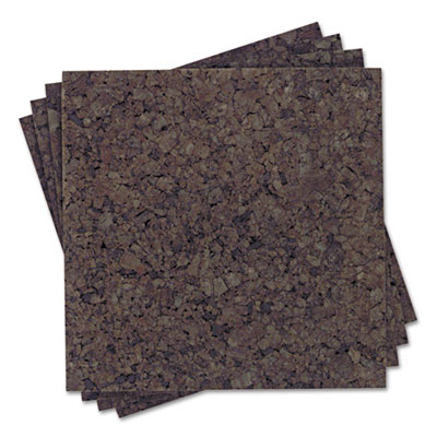 Design your own bulletin board or cover a whole wall with dark cork panels. Accepts push pins and tacks—and also absorbs room noise. 1” square double-side adhesive tabs provided for application to your desired surface. Board Type: Bulletin Board; Board Width: 12"; Board Height: 12".