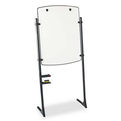 Sleek design is perfectly angled for writing and viewing. Dual-purpose easel provides the option of using either a whiteboard surface or flipchart pads for presentations. Total Erase® writing surface will not stain or ghost and is ideal for medium to heavy usage. Subtle grid pattern makes writing and drawing straight lines easy. Sturdy, lightweight, tubular steel frame complements modern office environments. Frame has built-in accessory holders. Anti-skid supports keep the easel from sliding and marring floors. Easel 75" high overall. Board Type: Dry Erase;Easel; Board Width: 31"; Board Height: 41".