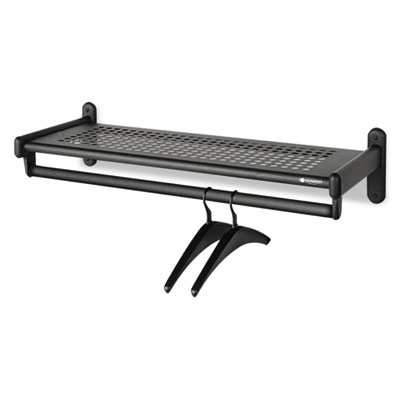 Perforated shelf ventilates garments. Holds four hangers per foot (not included). Powder coated, textured steel. Mounting: Wall; Width: 48"; Depth: 14 1/2".