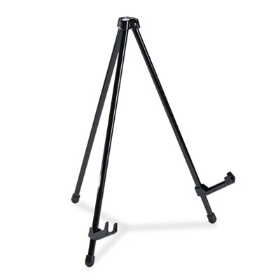 Light and compact; travels in a briefcase, sets up in seconds. Sturdy, adjustable display holder; antiskid feet. Trim, lightweight steel construction. Supports boards up to 5 lbs. 14 3/4" high. Easel Type: Folding Display; Maximum Easel Height: 14 3/4".