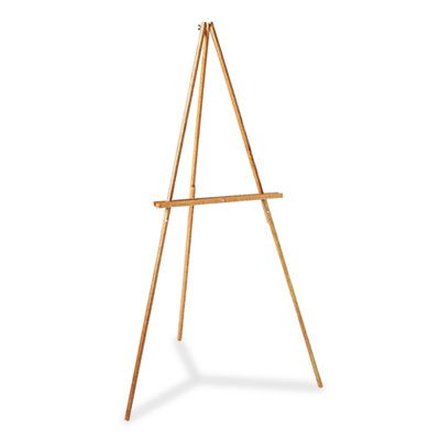 - Natural, lightweight wood easel stands 64" high, folds to 3w x 3d x 35 1/4h.