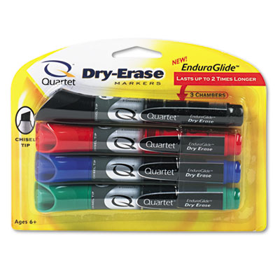 QRT5001M EnduraGlide Dry Erase Markers, Chisel Tip, Assorted Colors, 4/Set By QUARTET MFG.