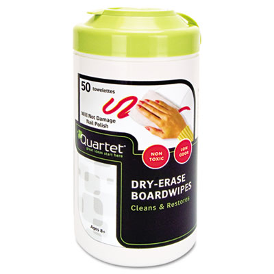 Moist towelettes clean and restore dry erase surfaces and are three layers thick. Plastic barrier in the middle keeps ink from hands. Low-odor; AP Certified Nontoxic. Will not harm nail polish. Towel/Wipe Type: Wet Wipes; Application: Dry Erase Boards; Applicable Material: Fiberglass;Melamine;Porcelain.