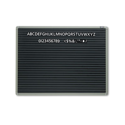 Create attractive signage with easy-to-change magnetic lettering. Durable black magnetic surface has evenly spaced ridges for precise letter alignment. Gray finished aluminum frame with modern detailing blends nicely in any area. Package includes mounting hardware and Quartet® molded magnetic letters, numbers and symbols. Board Type: Magnetic;Letter; Board Width: 24"; Board Height: 18".