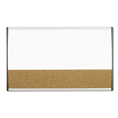 Make efficient use of cubicle space and keep important projects up to date. Lightweight design lets you easily add a hard-working communication space to personal spaces. Simply secure the mounting system to cubicle walls and hang the lightweight dry-erase board with pins. The versatile mounting system includes height adjustable clips to ensure straight and level installation during dry-wall mounts. The sleek, contemporary aluminum arc frame blends into any decor. Magnetic dry erase panel and self-healing pebbled colored cork panel. Board Type: Bulletin Board; Board Width: 30"; Board Height: 18".