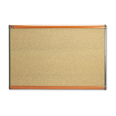The rich, graphite-blend colored cork blends with today's furniture and highlights displayed information, providing a lasting, durable surface that will not fade like traditional cork boards. Self-healing cork surface ensures a lasting fresh look. High-density backing delivers maximum pin-holding power. Aluminum frame. Includes "Easy Mount" hanging system plus Quick Clips to hold items without pinning or tacking. Board Type: Bulletin Board; Board Width: 36"; Board Height: 24".
