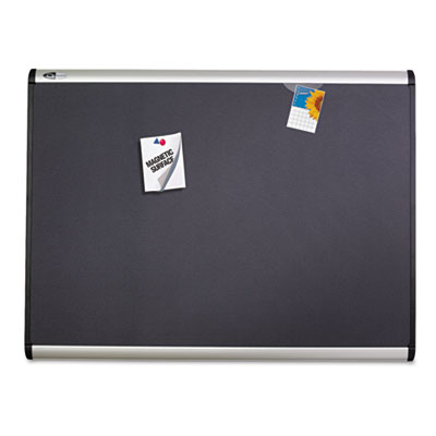 Design meets premium function in this sophisticated communication tool ideal for high profile offices and conference rooms. The versatile, magnetic bulletin surface secures documents with pins or magnets. Backed by high-density fiberboard, these top-of-the-line boards hold pins tightly in place so documents stay securely posted. The durable fabric will not crumble or fade like traditional cork boards. Fasten photos or important documents without holes using the included Quartet® Quick Clips and Magnets®. A patented “Easy Mount” hanging system allows for quick and secure installation. Board Type: Bulletin Board; Board Width: 72"; Board Height: 48".