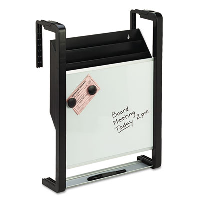 Get the most out of tight spaces with this dual-purpose hanging file system. 11" x 13" magnetic dry erase board combines with three-pocket filing system for extra efficiency. Two removable partitions convert the file pockets into two or three letter-size compartments. Brackets adjust to fit most panel systems from 1 3/8" to 4 1/2" thick. Can also be installed onto permanent walls. Hardware included for dry wall installations. Built-in marker tray. Includes Quartet® dry erase marker and mounting hardware. Hanging File Systems Type: Hanging Multiple Pockets/Dry Erase Board; For File Size: Letter; Overall Height: 20".
