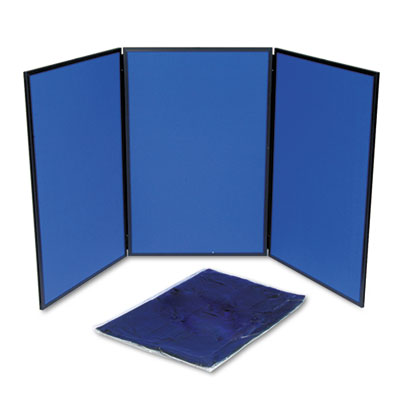 Fast and easy! Have a display ready in minutes. Remove the reversible lightweight, trifold panels from the included carrying bag, unfold and place on floor or tabletop. Fabric panels accept Velcro® fasteners or push pins. Duralite construction with PVC frame. Header Panel sold separately. Each panel: 24w x 36h. Board Type: Display; Board Width: 72"; Board Height: 36".