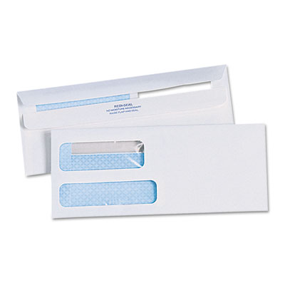 Self-stick, Redi-Seal™ self-adhesive closure requires no moisture to seal. Double flap design keeps envelope open until you choose to seal it. Wove finish adds a professional touch. Security tinted. Envelope Size: 4 1/8 x 9 1/2; Envelope/Mailer Type: Window.