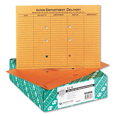 QUA63466 Brown Kraft Resealable Redi-Tac Open Side Interoffice Envelope, 9 x 12, 100/Box By QUALITY PARK PRODUCTS