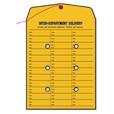 Sturdy, 28-lb. Kraft stock pre-printed box-style information grid provides space for 63 routing entries. String and button closure is ideal for interoffice use. Envelope Size: 10 x 13; Envelope/Mailer Type: Interoffice; Closure: String and Button.