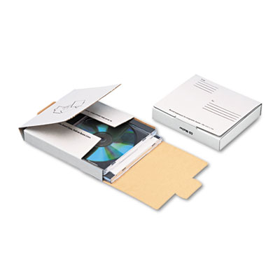 Sturdy fiberboard construction folds easily and protects contents. Requires no tape or glue. Holds two CDs/DVDs in jewel cases. Envelope Size: 5 3/4 x 5 3/4; Envelope/Mailer Type: Multimedia; Closure: Slot/Tab.