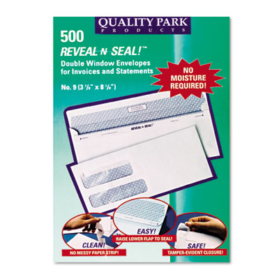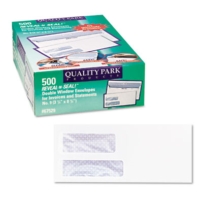 QUA67529 Reveal-N-Seal Double Window Invoice Envelope, Self-Adhesive, White, 500/Box By QUALITY PARK PRODUCTS