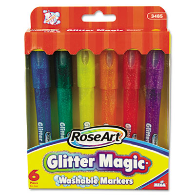 RAI3485YA24 Glitter Magic Markers, Washable, Assorted Colors, 6/Set By THE BOARD DUDES