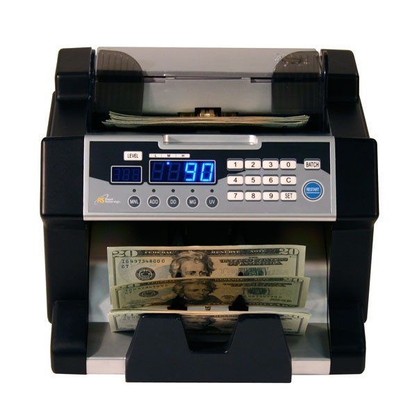 Royal Sovereign's RBC-3100 Bill Counter is the perfect solution for fast, accurate counting with counterfeit detection. This bill counter has Ultraviolet (UV), Magnetic (MG) and Infrared (IR) counterfeit detection systems. Its front-loading system can hold up to 300 bills and count at 1200 bills per minute. With easy to use button controls, simply change the machine to automatic or manual start. Bills can be counted in to preset batches ranging from 1-999.