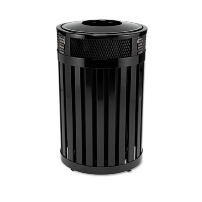 RCPMH24PLBK Avenue Small Open Top Waste Receptacle, Round, Steel, 23 gal, Black By RUBBERMAID COMMERCIAL PROD.