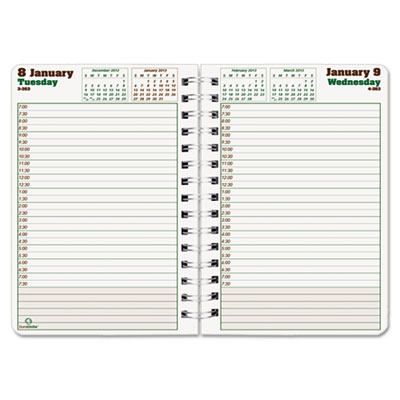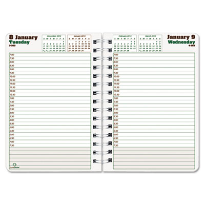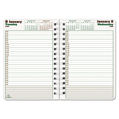 Organize your busy schedule on a daily basis with this environmentally friendly planner produced with paper made mostly from a sugar cane stock called bagasse. Daily notes section. Size: 8 x 5; Page Color/Theme: Brown/Green/White; Appointment Ruling: 30-Min., 7 AM to 7 PM.