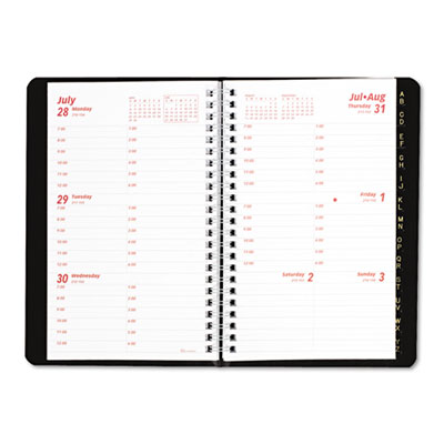 Hourly schedule for your workweek and ruled spaces for weekend appointments or notes. Tab indexed telephone/address section. Size: 5 x 8; Page Color/Theme: White; Appointment Ruling: 7 AM to 6 PM Mon.-Fri..