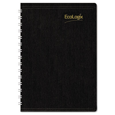 A greener way to plan your day! EcoLogix daily planner is made from 100% post-consumer recycled paper, 90% recycled wire and 60% recycled covers and features a different eco-friendly tip each day. One day per page with 30-minute appointment rulings. Telephone/address section so contact numbers are always at hand. Soft cover with twin wire binding. Size: 8 x 5; Page Color/Theme: Ecology; Appointment Ruling: 7 AM to 7:30 PM.